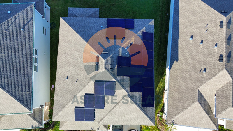 Aspire Solar installed an 11.7 kW solar system in this newly developed Land O’ Lakes community using 26 REC Alpha Pure RX 450W modules on a clean, open south-facing roof with no shading concerns. The array is split across two main roof planes to balance appearance while maximizing afternoon production—critical for keeping the home’s battery system fully charged during outages.