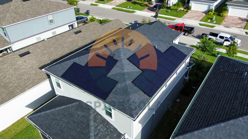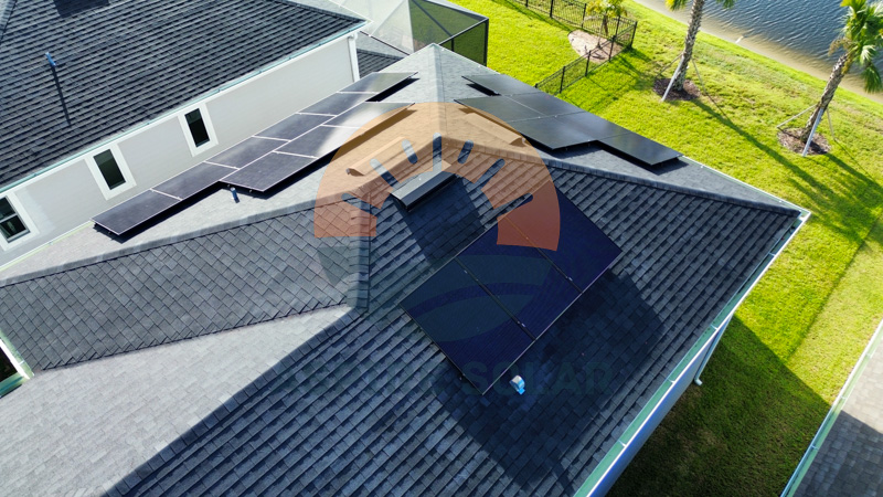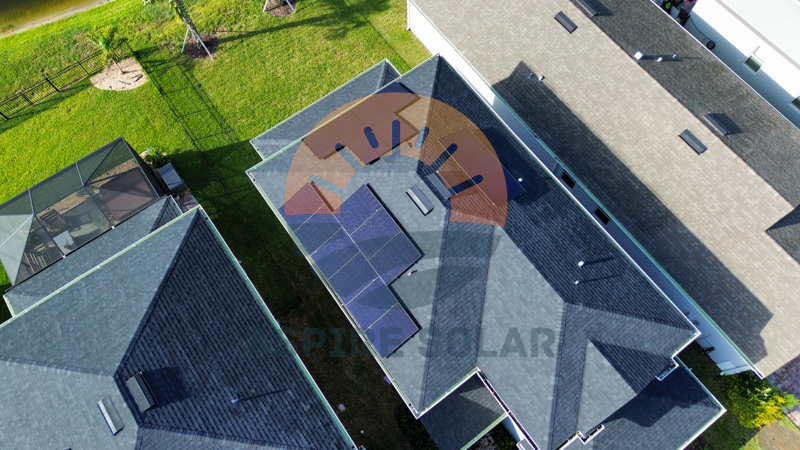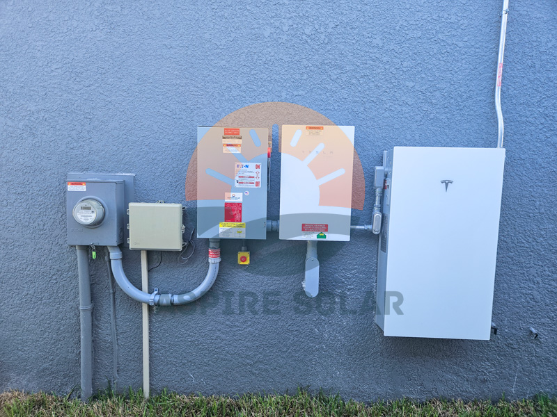To add resilience in a storm-prone part of Manatee County, the system includes a Tesla Powerwall 3, providing about 9.5 hours of whole-home backup under typical usage. At Aspire’s recommendation, the homeowner also installed a soft-start device on the air conditioner (through a partner HVAC contractor) to ease startup loads on the battery during outages.