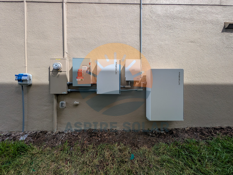 A Franklin aPower 2 battery was added for backup capability. The battery was mounted outside rather than in the garage because the home’s main service panel is located deep inside the garage, far from the meter. Locating the battery outdoors reduced conduit runs and avoided unnecessary complexity, and the chosen exterior wall has enough shade to protect the unit from direct heat. The homeowner plans to use the battery primarily for short-duration outage protection rather than long-term whole-home backup.