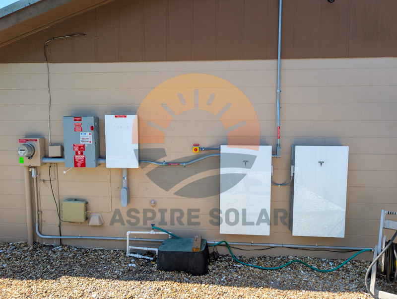 The project includes a Tesla Powerwall 3 Hybrid Inverter and one Expansion Pack, creating a 27 kWh storage system capable of delivering up to 11.5 kW of continuous power. The battery and inverter equipment are mounted cleanly along the home’s exterior wall for easy service access and a streamlined layout.