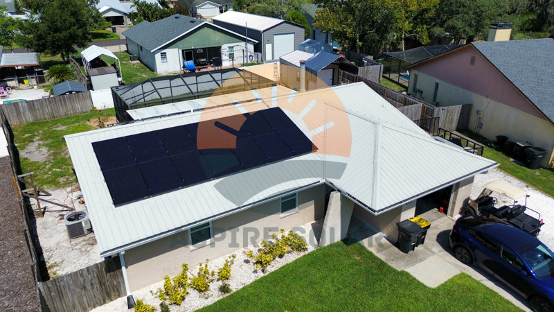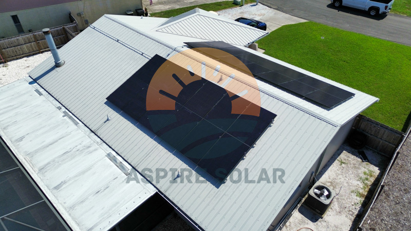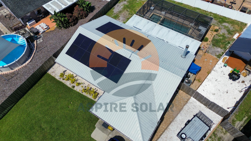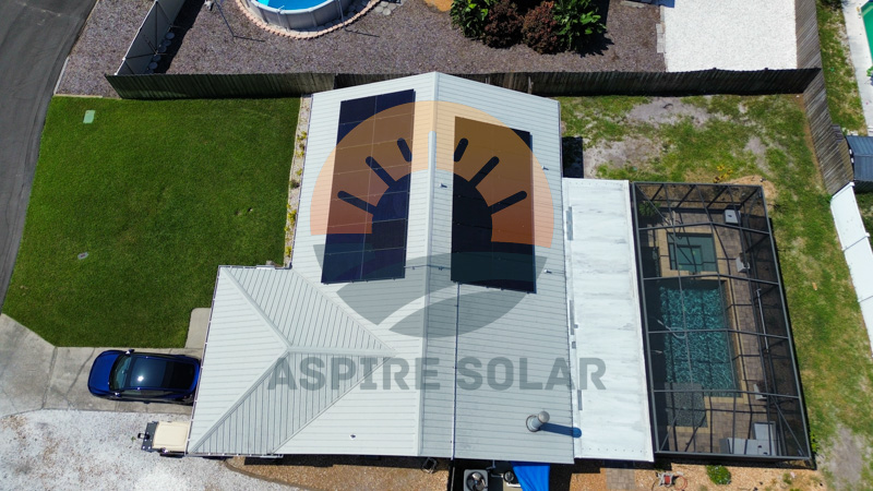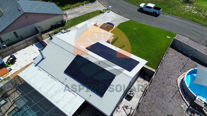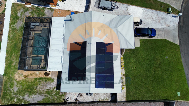 Aspire Solar installed an 11.7 kW solar array for this Winter Haven, FL home using 26 REC Alpha Pure RX 450W modules mounted on a standing-seam metal roof. These high-efficiency panels provide strong performance in Florida’s year-round sunlight and pair directly with a whole-home battery system for added resiliency.